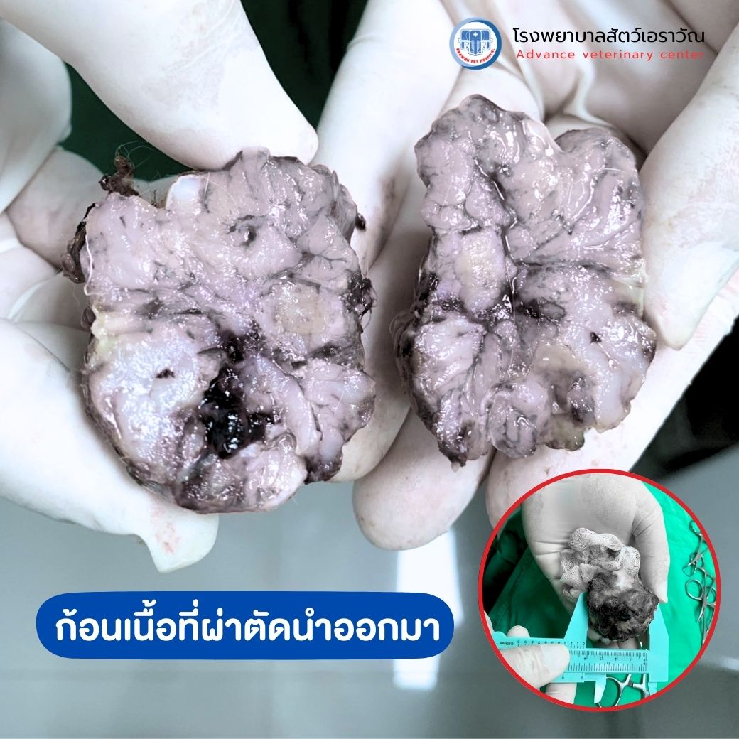 การผ่าตัดดำเนินไปอย่างรอบคอบภายใต้การดูแลของทีมสัตวแพทย์มืออาชีพและมากประสบการณ์ทั้งด้านศัลยกรรมและโรคหัวใจ ด้วยการวางแผนที่แม่นยำและอุปกรณ์ที่ทันสมัย การผ่าตัดจึงประสบความสำเร็จ น้องฟื้นตัวได้ดีหลังการผ่าตัด และได้รับการดูแลอย่างใกล้ชิดในห้องพักสัตว์ป่วย (CCU) ของเรา หลังจากนั้น เราได้นำชิ้นเนื้อไปตรวจพบว่าเป็นมะเร็ง