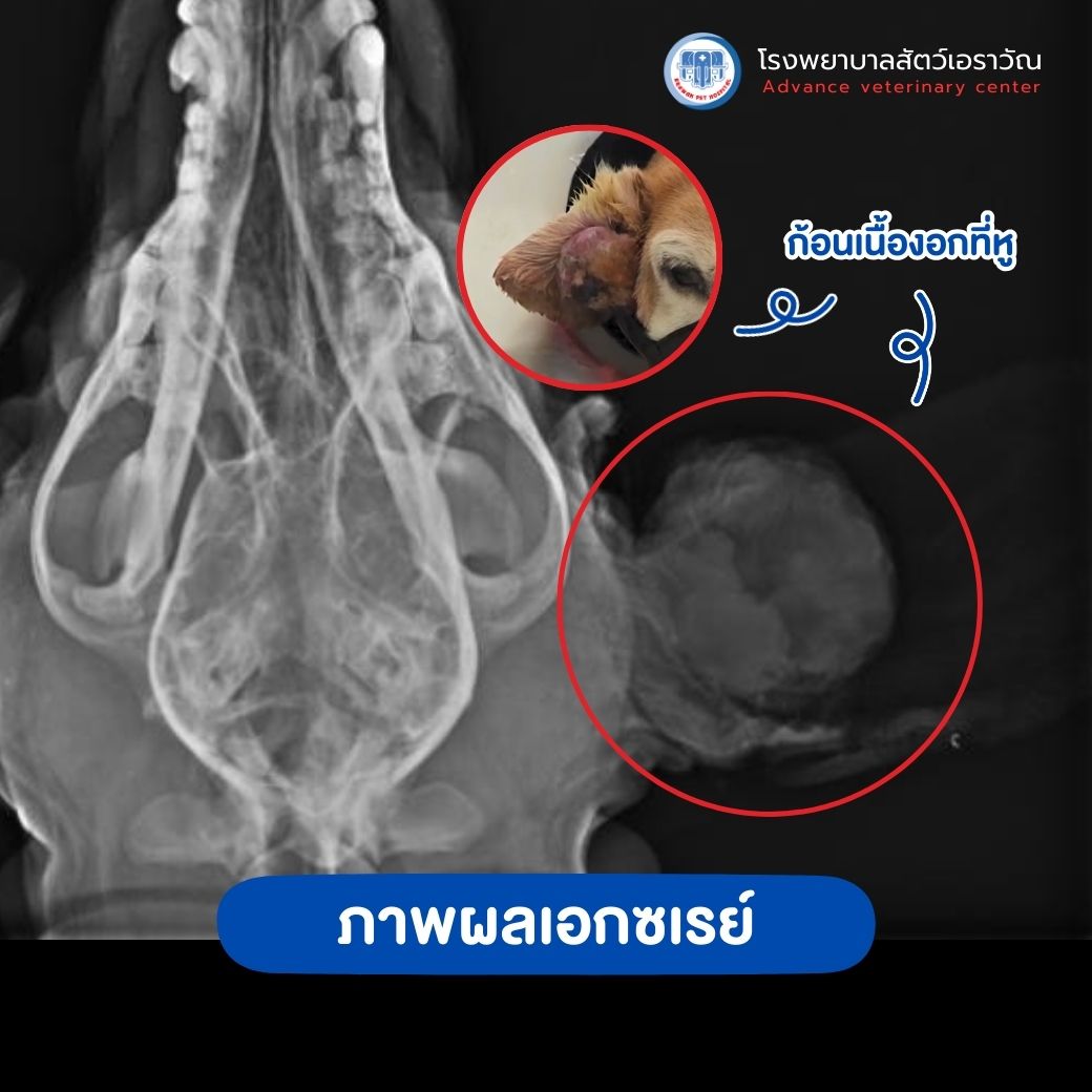 เจ้าของพาน้องสุนัขอายุ 11 ปี เข้ามารับการรักษาหลังจากพบก้อนเนื้อบริเวณหู ในช่วงแรกเจ้าของพาน้องไปรักษาที่คลินิกใกล้บ้านและพบว่าน้องมีภาวะลิ้นหัวใจรั่วและหัวใจวายระยะที่ 3 ทำให้คลินิกไม่แนะนำให้ทำการผ่าตัด เนื่องจากมีความเสี่ยงสูง อย่างไรก็ตาม ก้อนเนื้อนี้เติบโตขึ้นอย่างรวดเร็วและเริ่มมีหนองไหลออกมาตลอด สร้างความกังวลใจให้กับเจ้าของเป็นอย่างมาก