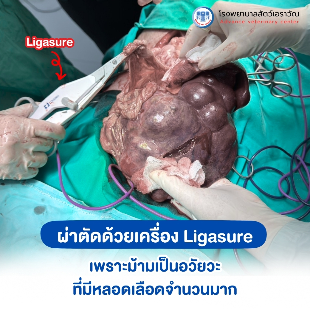 การผ่าตัดเนื้องอกที่ม้าม (splenectomy) เป็นหัตถการที่ต้องใช้ความชำนาญสูง เนื่องจากม้ามเป็นอวัยวะที่มีหลอดเลือดจำนวนมาก ทำให้มีความเสี่ยงต่อการเสียเลือดระหว่างผ่าตัด โดยเฉพาะในกรณีที่เนื้องอกอาจแตกหรือมีลักษณะร้ายแรง เช่น hemangiosarcoma ซึ่งเป็นมะเร็งที่พบได้บ่อยในสุนัขพันธุ์ใหญ่ ความซับซ้อนของเคสนี้เพิ่มขึ้นเมื่อน้องสุนัขมีภาวะพยาธิเม็ดเลือด เช่น Babesia หรือ Anaplasma ซึ่งทำให้เกิดภาวะโลหิตจางรุนแรงและปัญหาการแข็งตัวของเลือด ส่งผลให้ร่างกายอ่อนแอและทนต่อการผ่าตัดได้ยาก