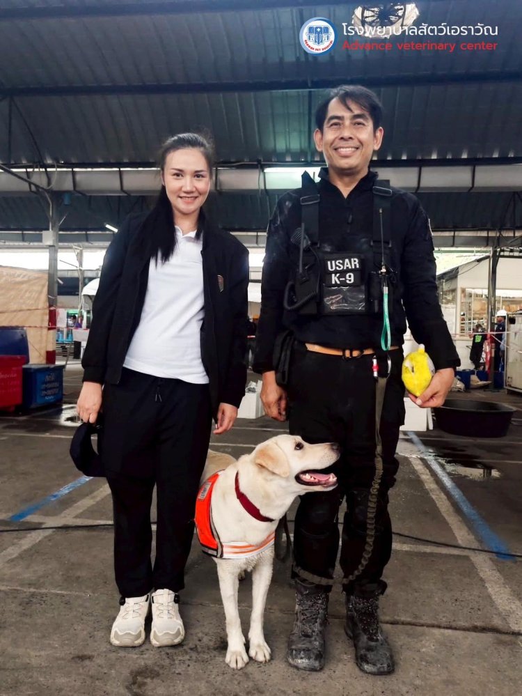 โรงพยาบาลสัตว์เอราวัณ ขอร่วมเป็นส่วนหนึ่งในภารกิจครั้งนี้ โดยมี สพ.ญ.บุษยมาศ เจียมวิจิตรกร ผู้บริหารโรงพยาบาลสัตว์ในเครือเอราวัณ, สพ.ญ.กรวรรณ ไชยสาลี ผู้อำนวยการโรงพยาบาลสัตว์เอราวัณ ศูนย์ลพบุรี และ สพ.ญ.นิศาชล สังข์สุวรรณ ผู้อำนวยการศูนย์ติวานนท์ พร้อมทีมสัตวแพทย์และเจ้าหน้าที่เข้าร่วมเป็น สัตวแพทย์อาสาในภารกิจแผ่นดินไหว คอยดูแลสุนัข K9 ของหน่วยงานต่างๆ ไม่ว่าจะเป็น K9 USAR, United Sar K9, Thailand Volunteer รวมถึงสุนัขตำรวจและสุนัขทหารที่เข้าปฏิบัติหน้าที่อย่างเข้มแข็ง