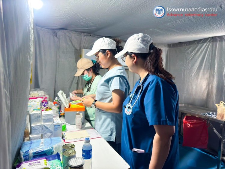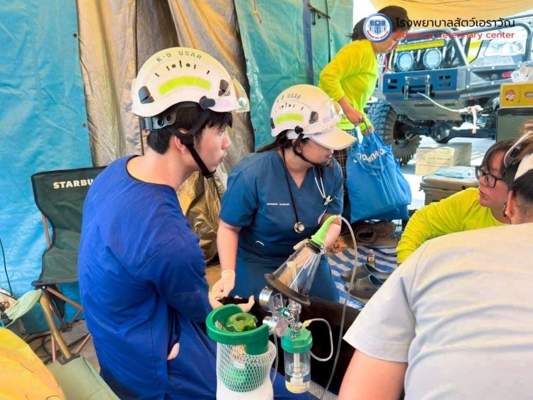 สัตวแพทย์อาสา: ทีมดูแลเบื้องหลังฮีโร่สี่ขาท่ามกลางสถานการณ์ภัยพิบัติที่เต็มไปด้วยความเครียดและความไม่แน่นอน สัตวแพทย์ไทย ได้เข้าร่วมเป็นหนึ่งใน ทีมสนับสนุนภารกิจค้นหาและกู้ภัย โดยดูแลสุขภาพของสุนัข K9 อย่างใกล้ชิด ทั้งการตรวจร่างกาย การรักษาอาการบาดเจ็บ รวมถึงการจัดหาอุปกรณ์จำเป็น เช่น ถังออกซิเจน ยา เวชภัณฑ์ และอุปกรณ์ทางการแพทย์